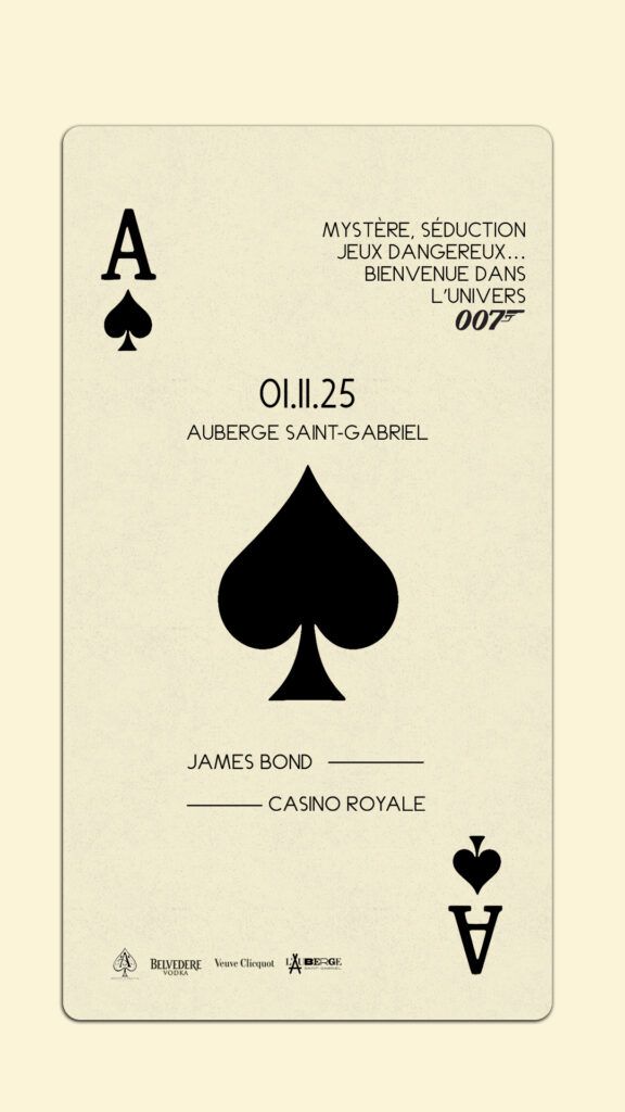 On November 1, Auberge Saint-Gabriel transforms into an artistic universe dedicated to the greatest spy of all… BOND. JAMES BOND.